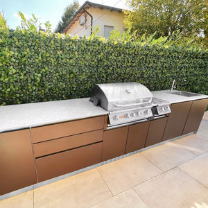 خزانات مطبخ حديقة خارجية فاخرة مخصصة مع حوض أو شواء كامل من الفولاذ المقاوم للصدأ للشواء في الهواء الطلق