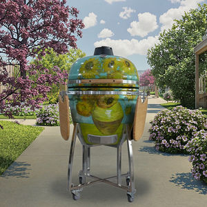 شواية كامادو سيراميك فاخرة من أوبلكس مقاس 23 بوصة مع عربة وسطح غير لاصق وجهاز أمان لانقطاع الأكسجين