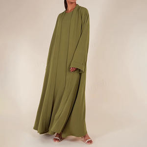 عباءة نسائية إسلامية جديدة بتصميم كيمونو مع فستان داخلي، طقم عباءة بلون موحد وطول كامل للنساء المحتشمات