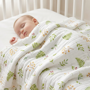 بطانية أطفال مخصصة متعددة الطبقات 70% خيزران 30% قطن، بطانية ناعمة وماصة للمواليد الجدد مع طباعة رقمية