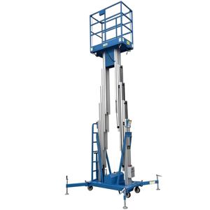 منصة رفع هيدروليكية معتمدة من CE بارتفاعات 4م و6م و8م و10م و12م و14م، سعة 200-300 كجم، رافعة كهربائية عمودية داخلية بعمود مزدوج من الألومنيوم