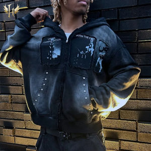 الشركة المصنعة 500 جرام/متر مربع غسيل حمض مبطّن مطرز بالأسى مخصص قطع خياطة الربط بسحاب يصل طباعة DTG بأغطية رأس