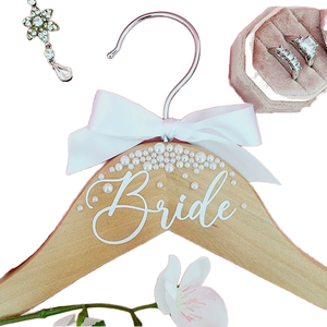 بدلة شخصية للعروس والعريس فستان زفاف خشبي معلقة مع زينة لؤلؤ غير قابلة للإنزلاق لحفلات الزفاف