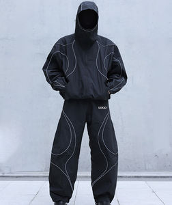 طقم بدلات رياضية نايلون للرجال للجنسين سريعة الجفاف وخفيفة الوزن ومقاومة للماء للتدريب الرياضي سترة واقية من الرياح بغطاء للرأس سراويل طويلة عاكسة