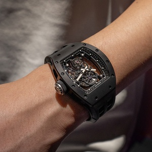 ساعة كرونوسارت الميكانيكية المخصصة للرجال - هيكل من الكربون مع زجاج كريستال الياقوت، وحزام مطاطي برتقالي