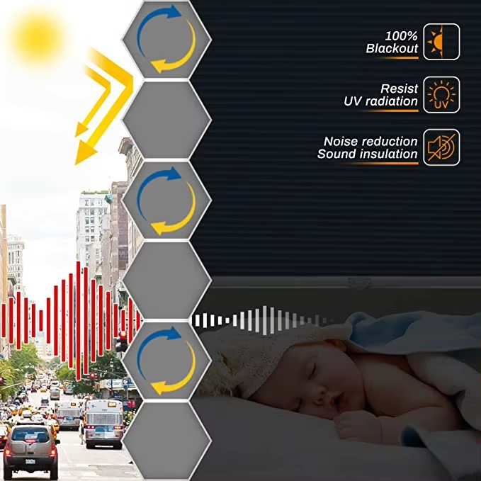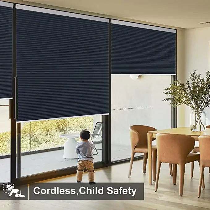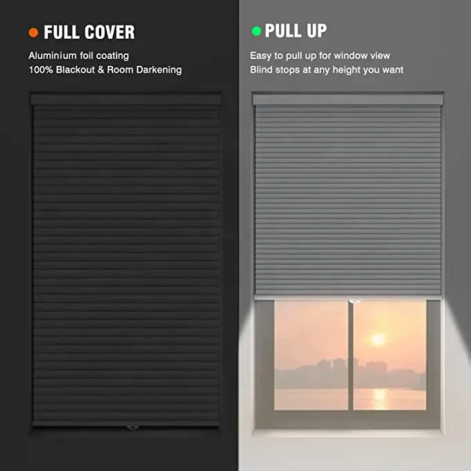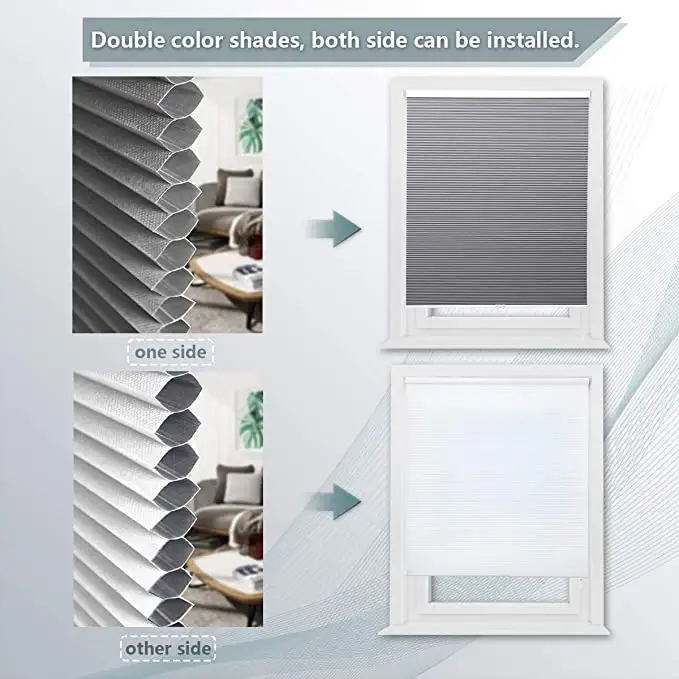 ستائر نوافذ ذكية آلية بدون حفر، قماش معتم، ظلال وستائر بدون حبال، تصميم خلية النحل / خلايا النحل الخلوية
